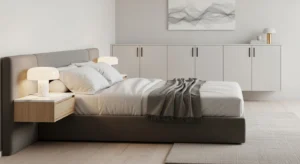 Floating nightstands enhance the airy feel of minimalist rooms. Choose slim wooden or matte white designs.
