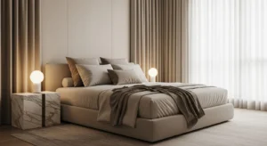 Minimalist bedrooms start with a calm color palette. In 2026, warm neutrals like soft beige, ivory, and light greige are trending over cool grays. These shades create a peaceful backdrop that feels modern yet cozy.