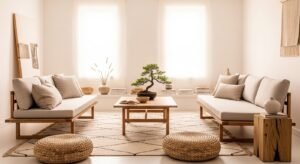 Idea 6: Japandi Living Room with Soft Neutral Paints