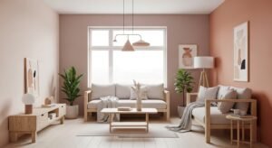 Japandi style continues to rise in 2026, blending Japanese simplicity with Scandinavian warmth. Wall colors stay soft and neutral, such as warm white, light taupe, and stone gray.
