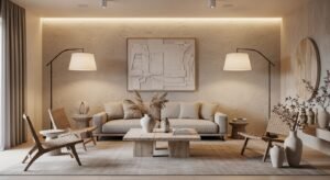 Avoid bold colors and focus on harmony. This living room style feels peaceful, functional, and deeply modern.