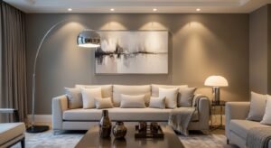 Use matte paint finishes for a smooth, modern appearance. Add depth with textured rugs, layered lighting, and neutral artwork. Greige living rooms feel balanced, timeless, and effortlessly stylish.