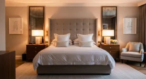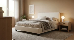 Warm neutral bedrooms continue to dominate 2026 trends. Shades like creamy white, soft beige, and warm taupe create a calm and inviting retreat. These colors reflect natural light beautifully, making the bedroom feel airy yet cozy.
