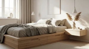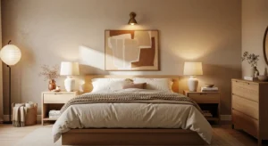 Japandi combines Scandinavian simplicity with Japanese warmth. Use low-profile beds, natural wood finishes, and soft neutral tones.