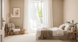 Use matte wall paint for a soft aesthetic finish. Pair neutral walls with layered bedding in linen and cotton textures. Add light wood furniture to maintain warmth without cluttering the space.