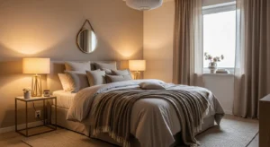 Use bedside lamps, LED strips, and warm bulbs to enhance coziness.