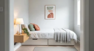 Choose multifunctional furniture like storage beds for small spaces.