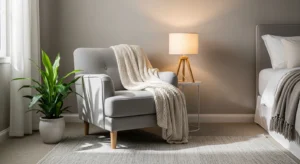 Add a comfortable accent chair with a soft throw near a window. Layer warm lighting to create a relaxing atmosphere.
