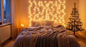 Fairy lights are one of the easiest ways to create a cozy Christmas atmosphere. String lights placed across a wall instantly transform an ordinary room into a warm holiday retreat.