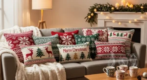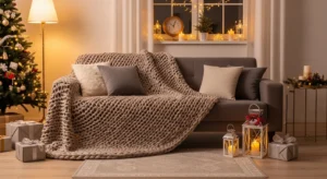 Layering textures and lighting creates the ultimate cozy Christmas atmosphere.