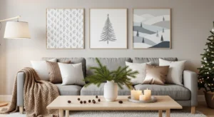 Seasonal wall art prints featuring winter landscapes, pine trees, or holiday quotes can refresh your room decor.
