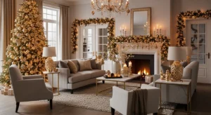 Decorating with white, beige, soft gold, and light wood accents creates a calm and elegant holiday atmosphere.
