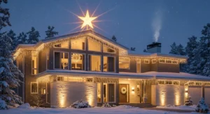 Place a large illuminated star decoration near the roof peak.