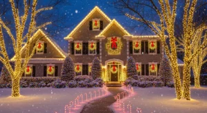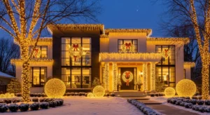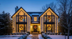This lighting style works beautifully with modern, farmhouse, and traditional homes, making it one of the most versatile Christmas exterior decorating ideas.