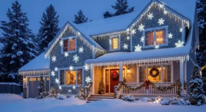 Install a snowflake projector that shines moving patterns across the house exterior.