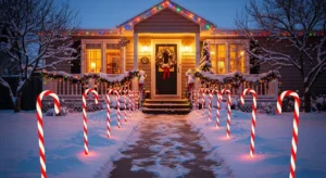 Use small stake lights, lanterns, or LED candy cane lights along the path.