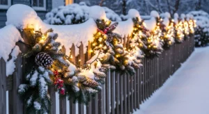 Decorate fences and entry gates with soft glowing string lights.