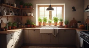 Add life with indoor plants and herb pots. Windowsills or open shelves are perfect spots. 2026 trends highlight sustainable kitchens with living elements. Herbs like basil, rosemary, or thyme are practical and aesthetic. Use terracotta or ceramic pots for authentic country appeal.