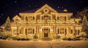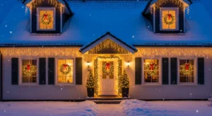 Adding ornaments, pinecones, or red bows creates extra holiday charm. The glowing garland becomes a focal point that enhances the architecture of the house.