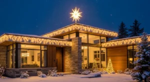 Place a glowing star decoration on the roof peak or above the garage. It becomes a stunning focal point for your Christmas lighting display.