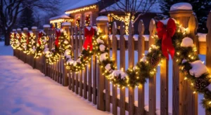 Decorate your front fence or gate with string lights and garlands to extend the festive look beyond the house.
